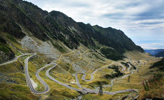 Na Romênia, passei por uma estrada surreal chamada Transfagarasan. O país não me impressionou muito, mas essa rodovia é realmente algo chocante. Uma estrada que se encaixa perfeitamente no corpo da montanha. Parece um jogo de videogame, curvas fechadíssimas e uma vista extraordinária.