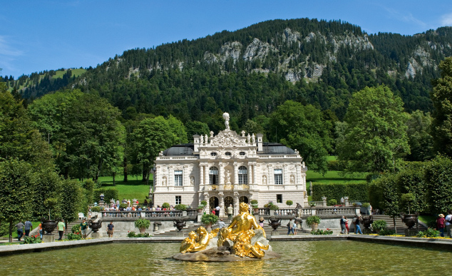 Localizado em Graswangtal, na Baviera, Linderhof é o único castelo que foi concluído com o rei Ludwig II ainda vivo e onde ele chegou a residir. Decorado inteiramente no estilo rococó, a construção possui salões ornamentados de ouro, com destaque para as salas de jantar e dos espelhos. Nos belos jardins do castelo, o visitante se depara com a Gruta de Vênus, construída por Ludwig como uma ilustração da opera “Tannhäuser”, de Wagner.