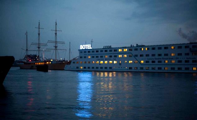 Fomos visitar o Eye Museum, um museu novo de arquitetura exuberante. Tivemos de atravessar o rio em cima de uma balsa onde se entra com bicicletas também, e é free. No caminho, passamos por um barco hotel. Vale a pena fazer o trajeto, do outro lado morava uma menina do meu grupo em pequenos containers, uma galera bem moderna.