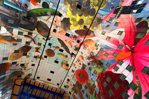 O Markthal, tradicional mercado de Roterdã com o seu fascinante teto com ilustrações gigantes de animais, frutas e verduras, vem batendo recordes de visitantes e se firmando como um dos hotspots e marcos arquitetônicos da cidade portuária holandesa.