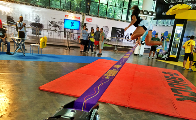 Visitante pratica Slackline na Adventure Sports Fair